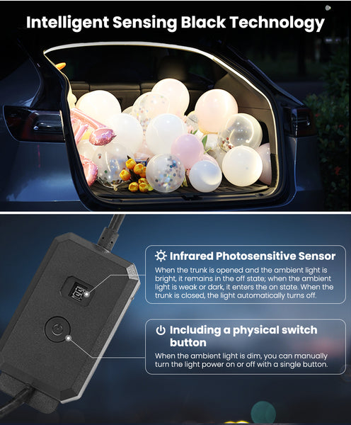This trunk lighting strip is your solution for enhancing your car's trunk lighting. With its automated switch for hands-free and energy-efficient operation, easy embedded installation, and durable PVC construction, it offers a reliable lighting solution. Can creating a romantic atmosphere when desired.